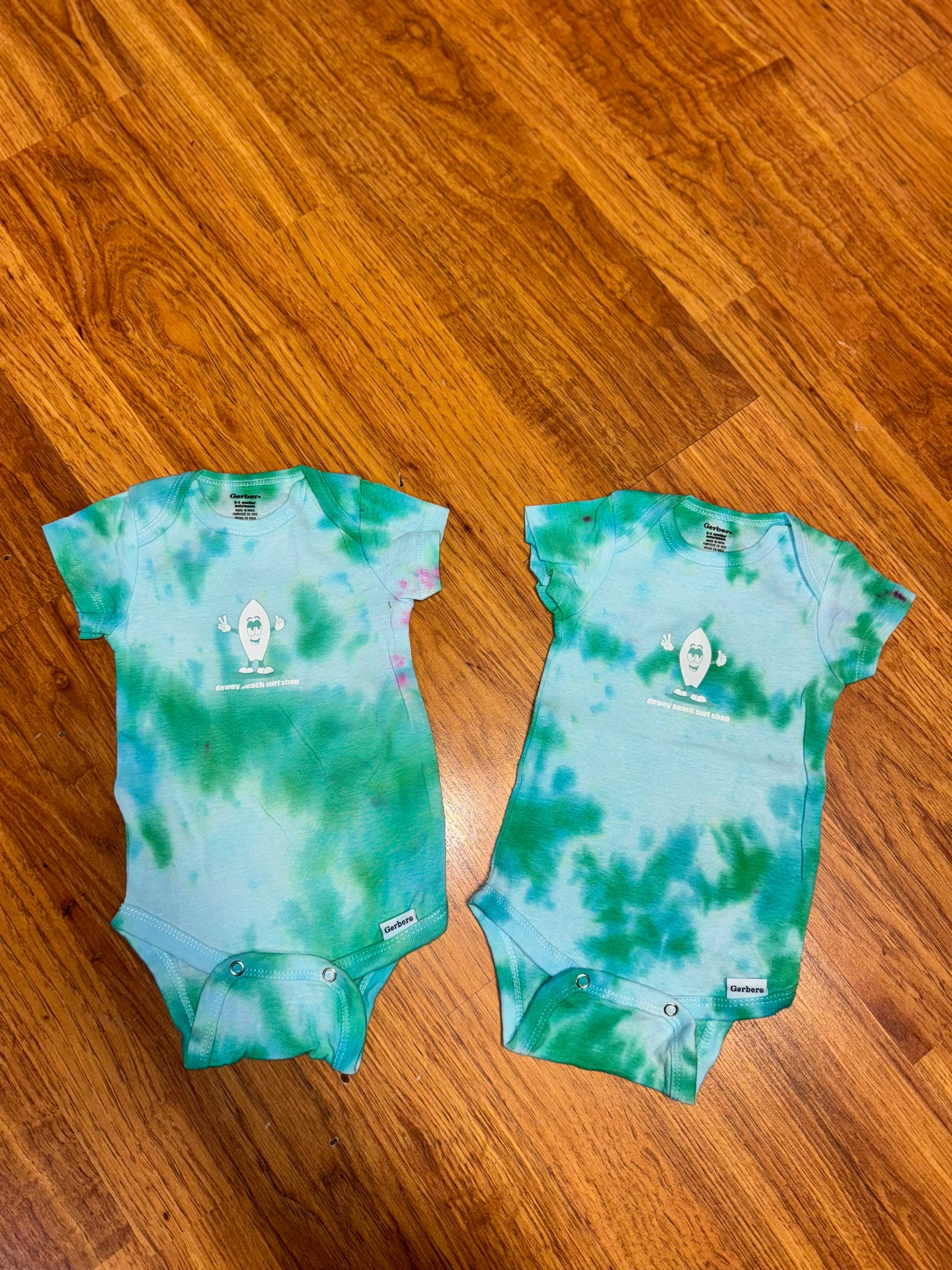 - Onesies are hand dyed and are therefore completely unique (some onesies may have small spots of other colors)